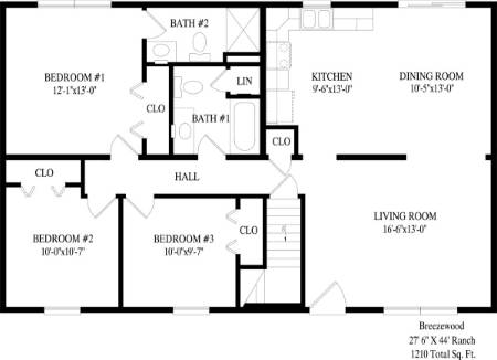 3 bedrooms | 2 bathrooms | 1,210 square feet | 27'6" x 44'